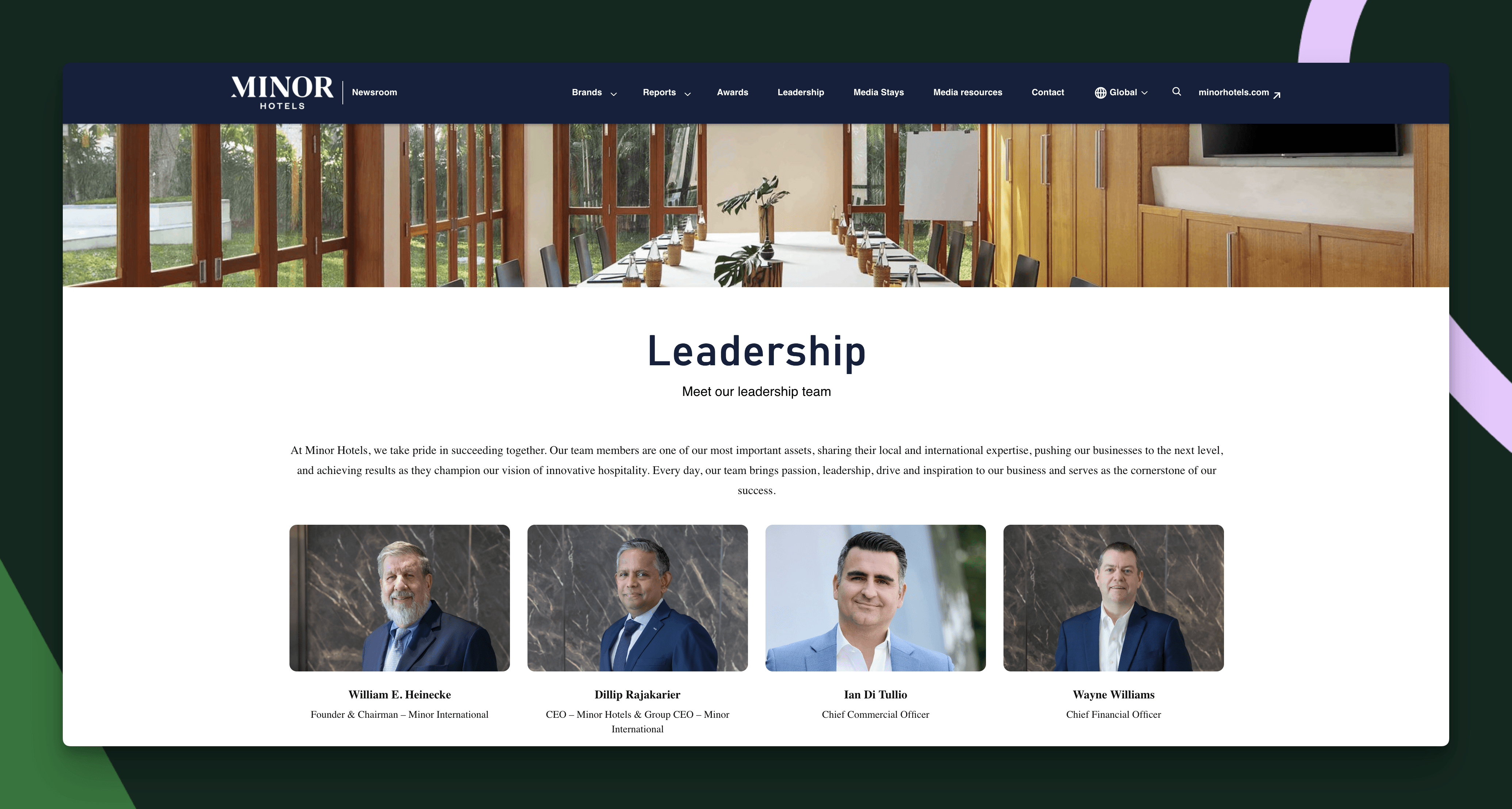 Leadership profiles: Feature your executive team, board members, and key members with dedicated biography pages.